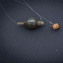 Kompaktowy kształt ogranicza chlapanie przy wpadaniu do wody, a boczne spłaszczenia stabilizują ciężarek na dnie, zapobiegając jego staczaniu się. Centryczna gumowa wstawka umożliwia szybką wymianę gramatury bez konieczności przebudowy zestawu. Cętkowana powłoka camo poprawia maskowanie na dnie, a w zestawie znajdują się koraliki Matrix Quick Change Feeder Beads montowane w rurce na wcisk.