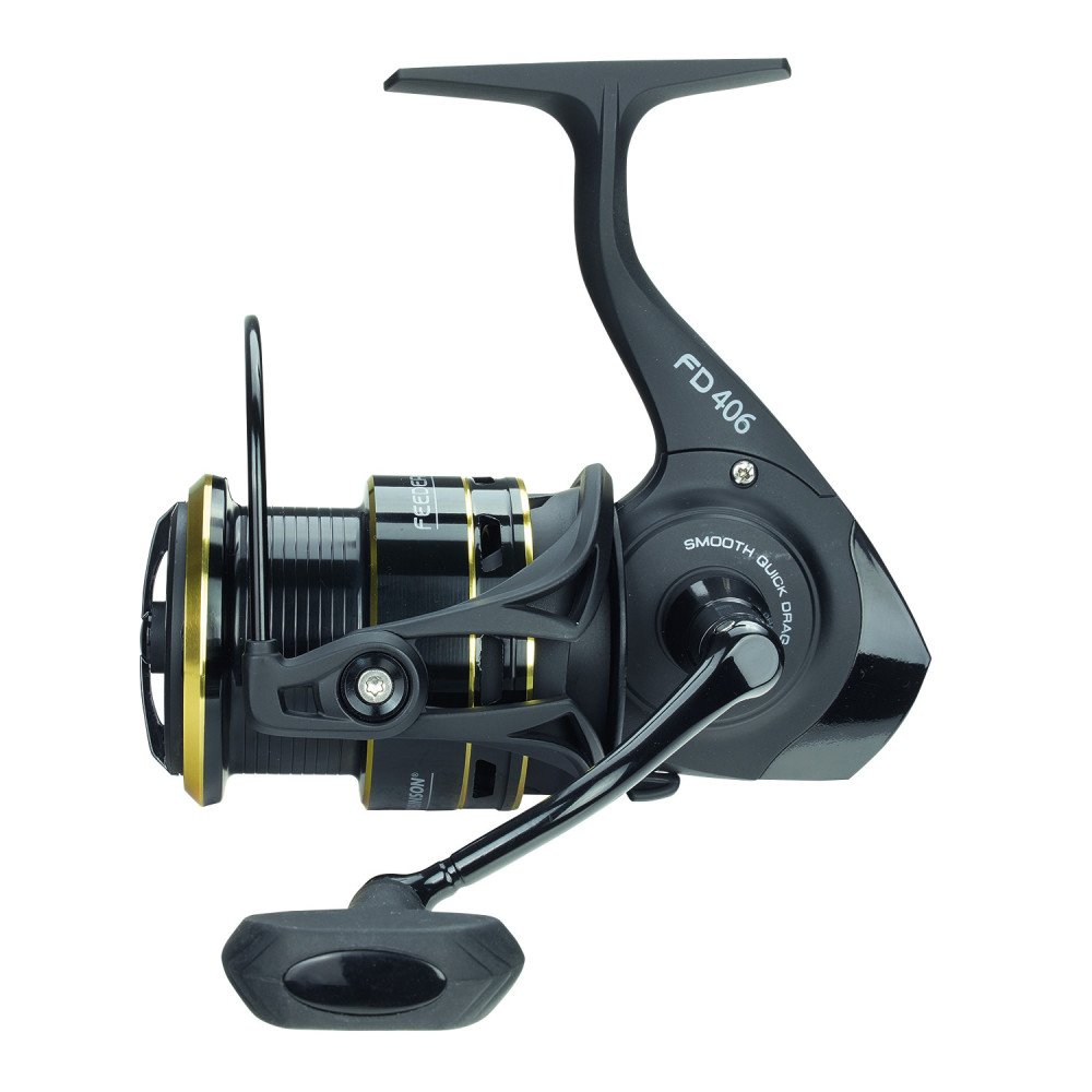 Nowoczesne gruntowe kołowrotki zaprojektowane z myślą o precyzyjnym i wygodnym łowieniu feederowym. Lekka grafitowa konstrukcja zapewnia odpowiednią wytrzymałość bez zbędnego obciążenia, a szybki hamulec typu Quick Drag umożliwia błyskawiczną regulację oporu podczas holu.