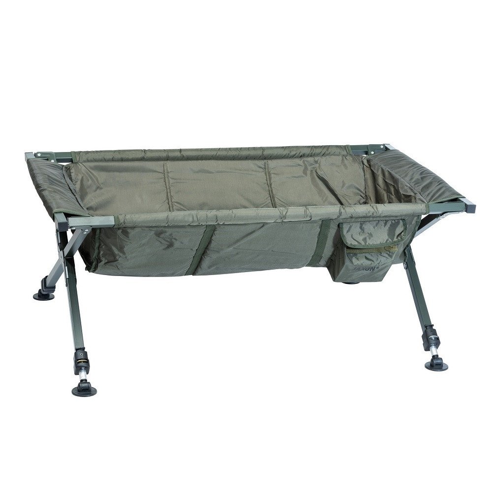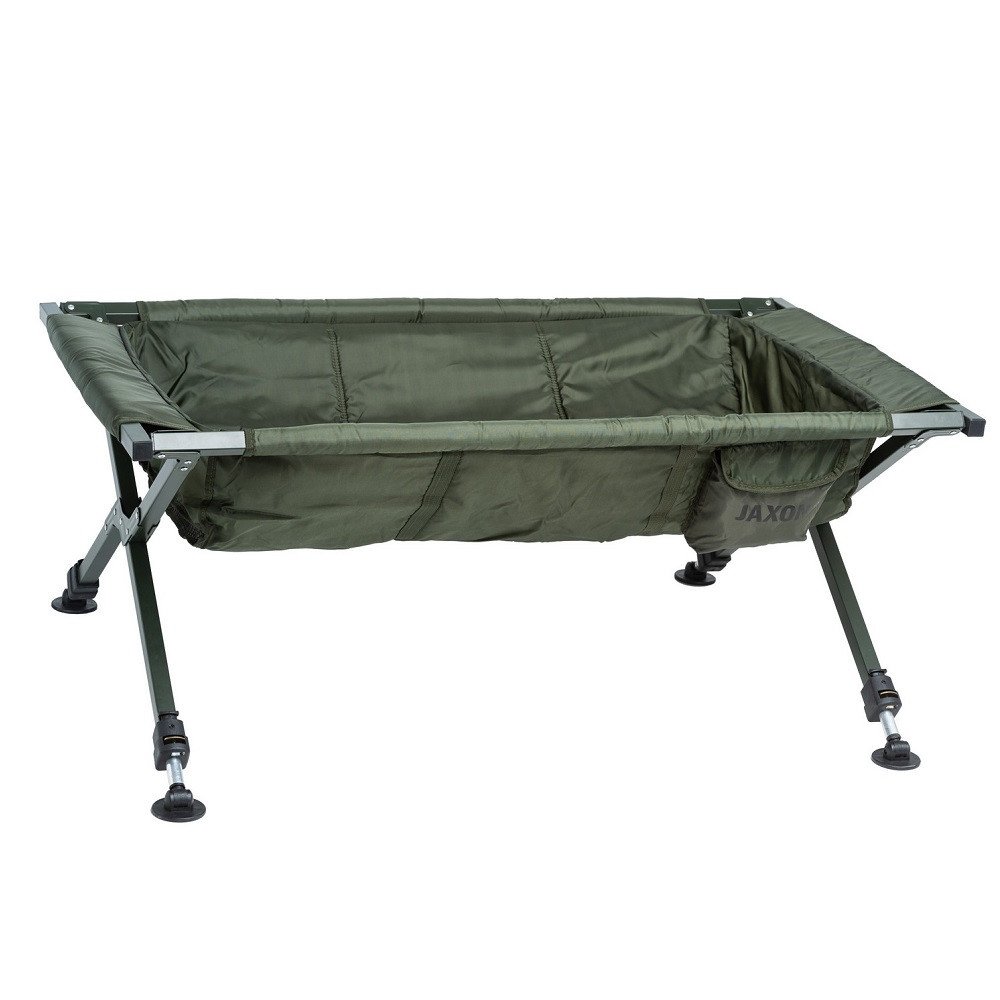Solidna kołyska karpiowa na regulowanych nóżkach.