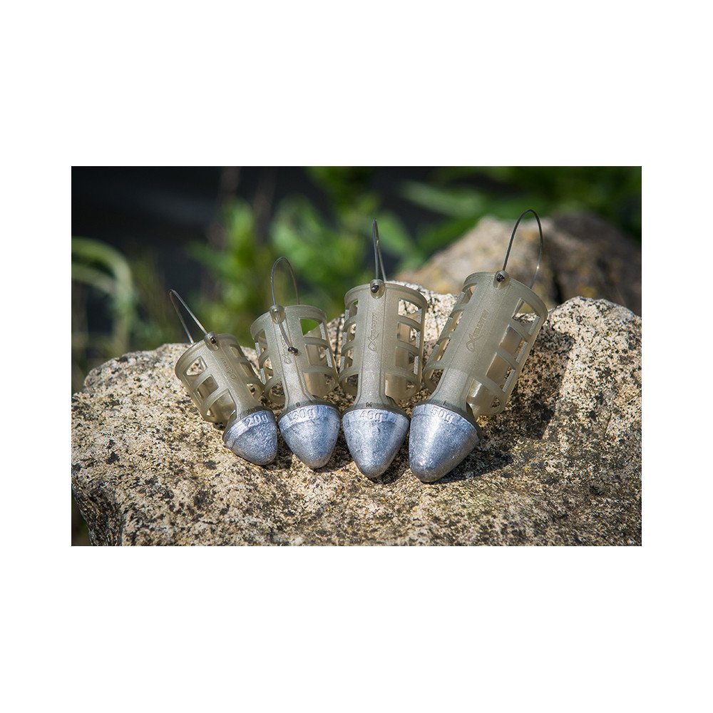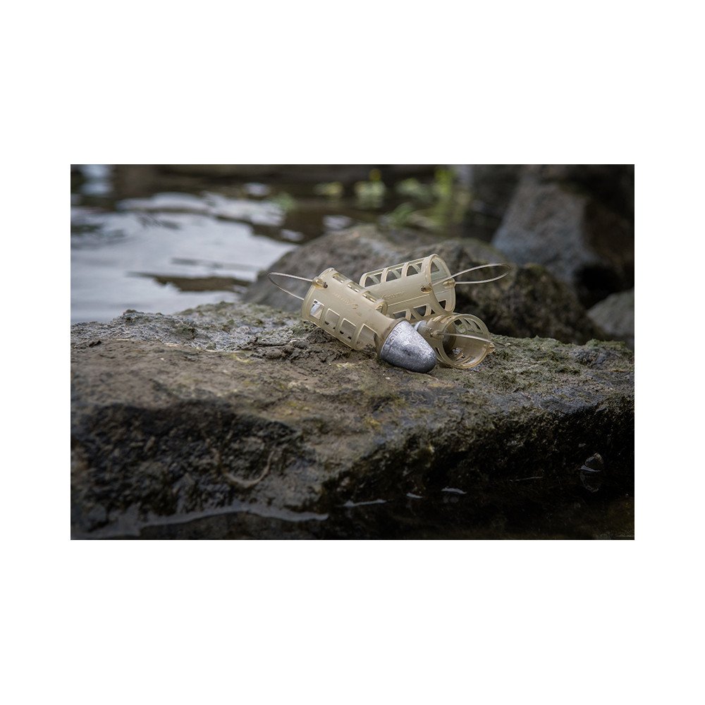 Koszyk zanętowy ze stożkowym ciężarkiem na spodzie do precyzyjnych rzutów na duże odległości.