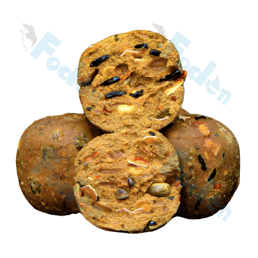 Najwyższej jakości kule zanętowe przygotowane przez Putton Flavors. W ich składzie można znaleźć wszystko co jest potrzebne do regularnego nęcenia karpi i amurów. Najwyższej jakości mączki rybne Lt 94 i pre-digest, drobno mielone ziarna, bird food oraz drożdże piwne, proteiny mleczne takie jak vitamelo czy serwatka. Do produkcji są dodawane wyłącznie jaja kurze. Dzięki odpowiednio dobranym składnikom kulki te są łatwo strawne dla karpi które z pewnością powrócą w nęcone miejsce. Wysoka zawartość mączek roślinnych powoduje, że dłużej pozostają odporne na ataki drobnicy. Opakowanie zawiera mix kulek w rozmiarze 20-24 mm.
