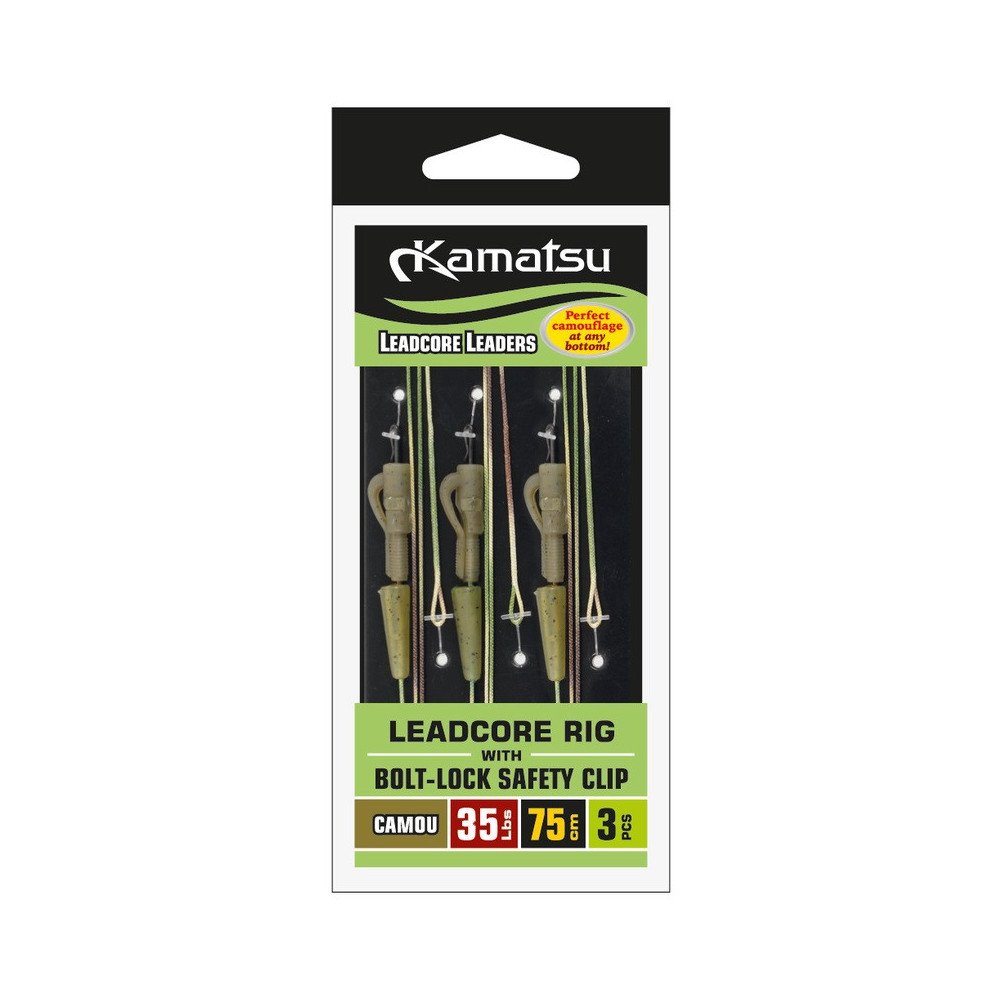 Zestaw leadcore Kamatsu z bezpiecznym klipsem 35lbs / 75cm camo - 3 szt.