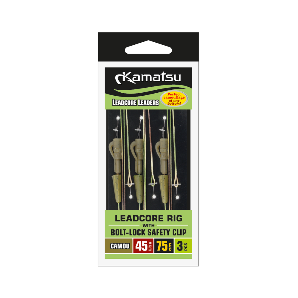 Zestaw leadcore Kamatsu z bezpiecznym klipsem 35lbs / 75cm camo - 3 szt.