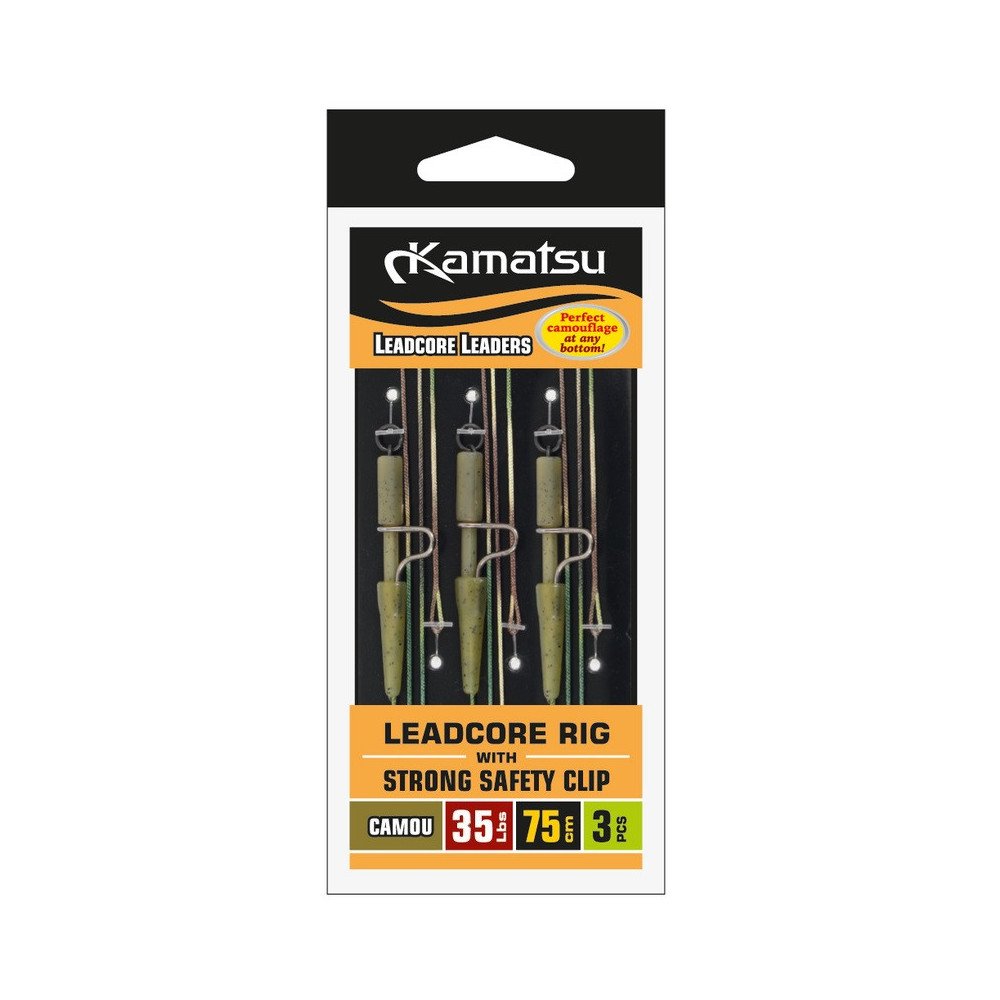 Zestaw leadcore Kamatsu z bezpiecznym klipsem 35lbs / 75cm camo - 3 szt.
