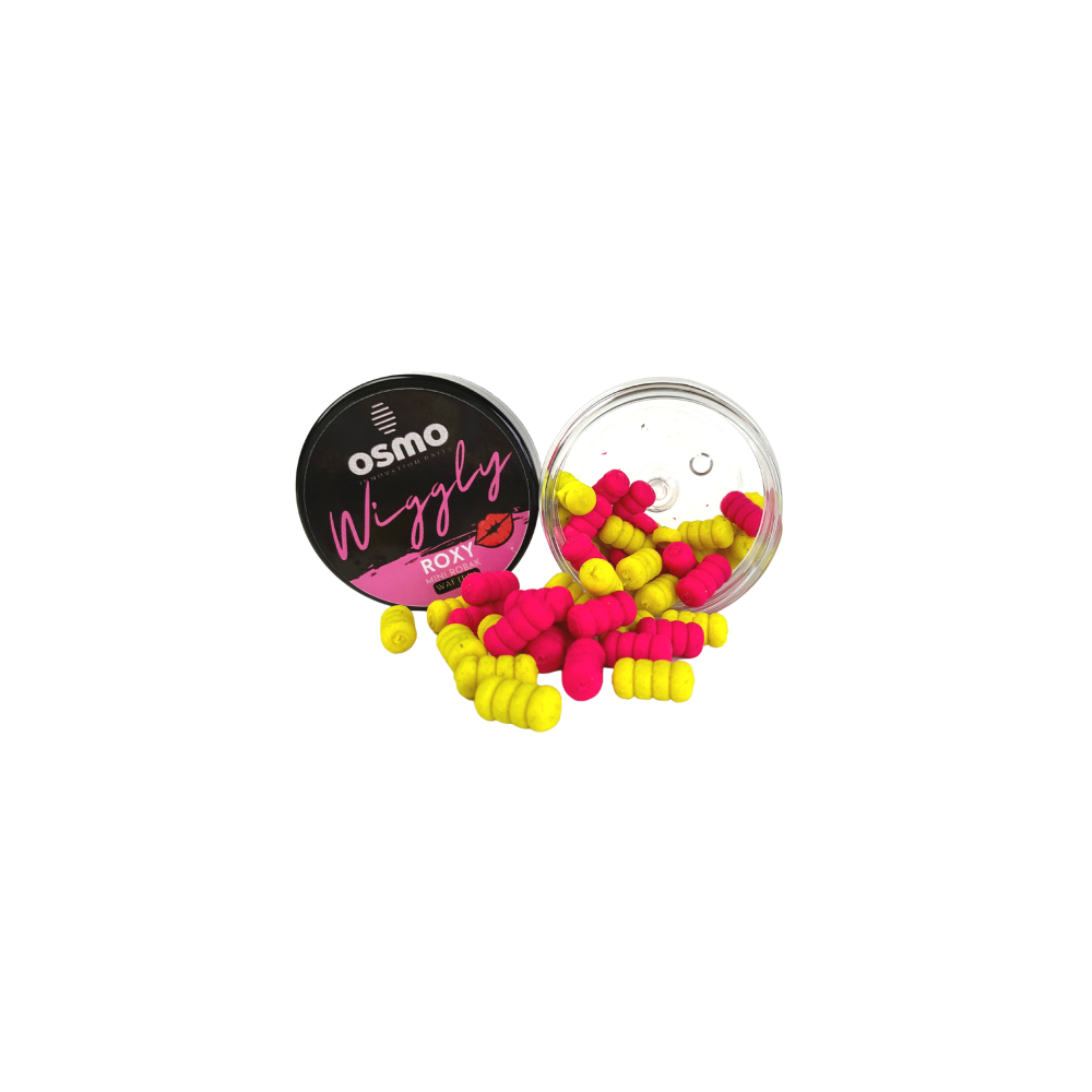 Roxy to charakteryzujące się wyjątkowym kształem który może kojarzyć się z robakiem lub wiązką kukurydzy na włosie waftersy w rozmiarach 12x6mm o neutralnym aromacie pinki (małych robaków) i ziół w tle.