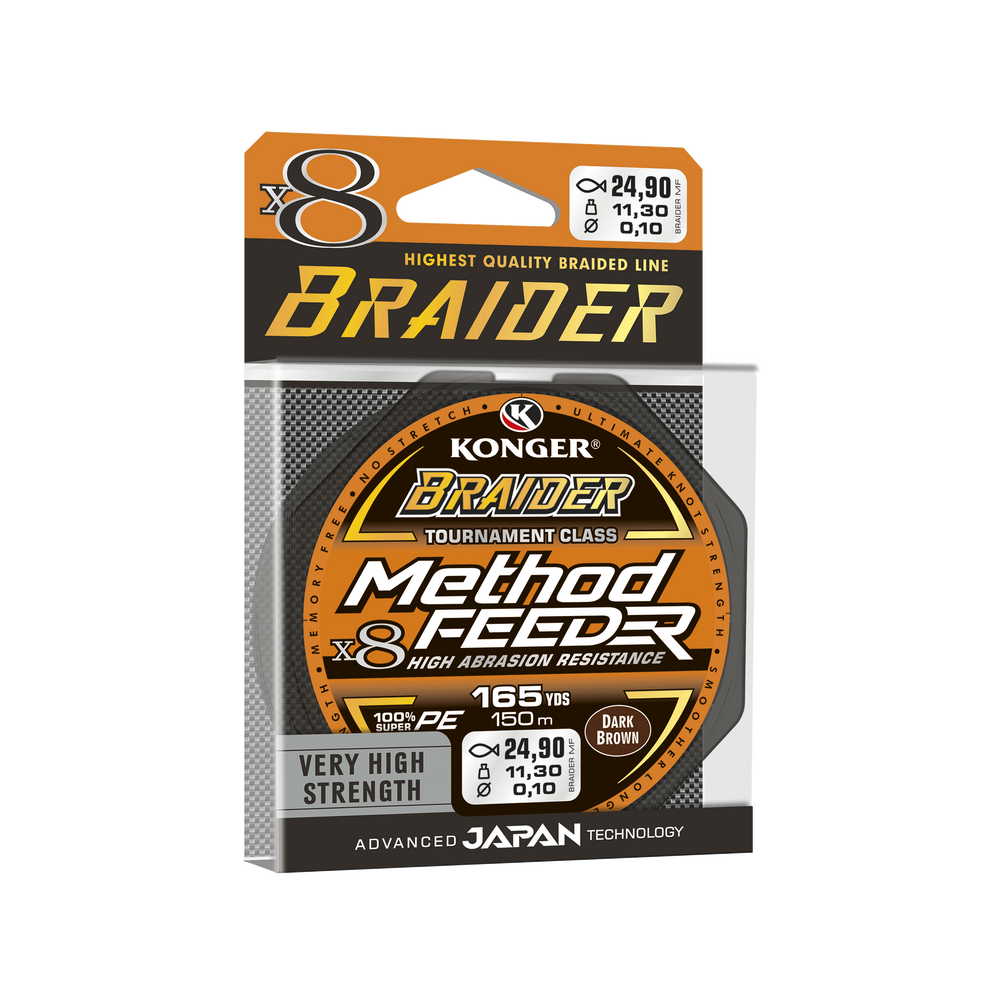 Zaawansowana technologicznie plecionka przygotowana specjalnie do łowienia feederem. Jest wykonana z 8 ściśle splecionych mikrowłókien, których skład chemiczny umożliwia jej tonięcie. Odznacza się wyjątkową gładkością i okrągłym przekrojem, czyli cechami potrzebnymi na każdym łowisku w celu osiągnięcia dalekich i precyzyjnych rzutów. Charakteryzuje się wysoką wytrzymałością na węźle, a jej ciemnobrązowy kolor sprawia, że nie płoszy ryb.