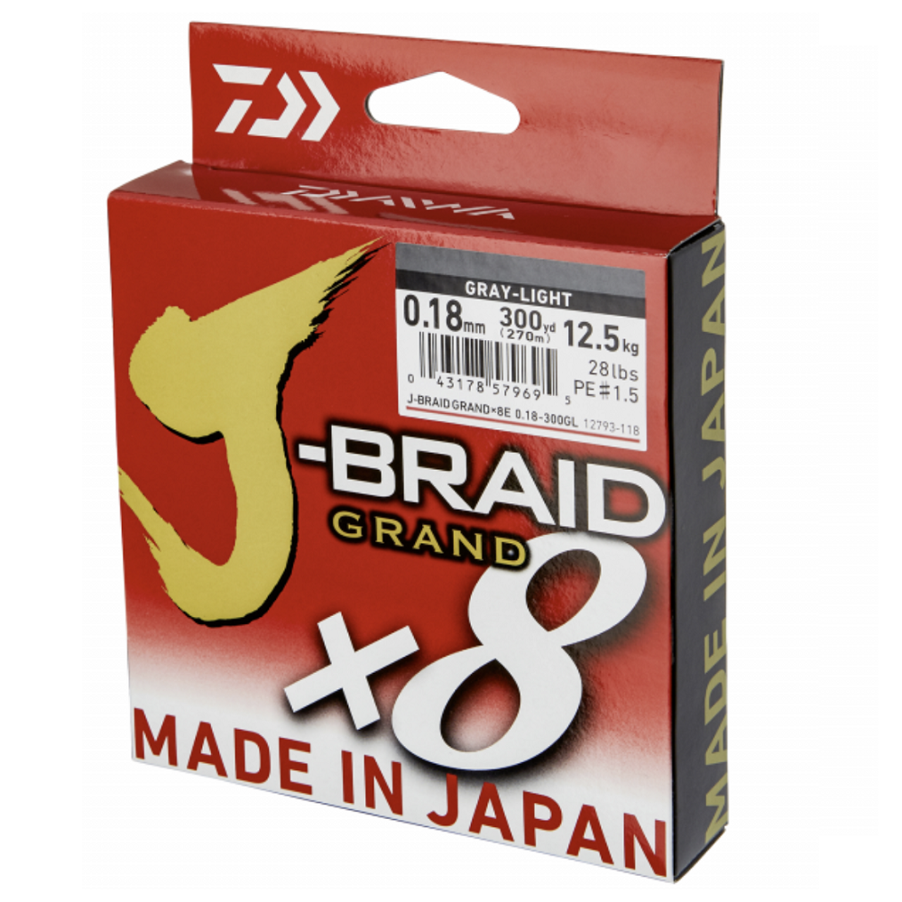 W porównaniu z dotychczasową J-Braid X8 udoskonalona Grand X8 cechuje się ciaśniejszym splotem, który skutkuje wyższą wytrzymałością na węźle i większą odpornością na ścieranie. Dzięki specjalnej procedurze polegającej na odpowiednim naciąganiu J-Braid Grand X8 w trakcie procesu produkcji dodatkowo zwiększa się jej udźwig i poprawia ścieralność. J-Braid Grand X8 jest bardzo miękka, a dzięki powlekanej powierzchni również ekstremalnie cicho przesuwa się przez przelotki. Jest nieco sztywniejsza od J-Braid X8 przez co lepiej nadaje się do połowu w wietrzne dni, kiedy zarzucanie jest mocno utrudnione. Plecionka wykonana w Japonii.
