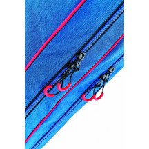 Wyściełane, podwójne komory mieszczą do czterech wędek i chronią je podczas transportu. Wewnętrzna przegroda oraz paski na rzep stabilizują sprzęt, zapobiegając przemieszczaniu się i uszkodzeniom.