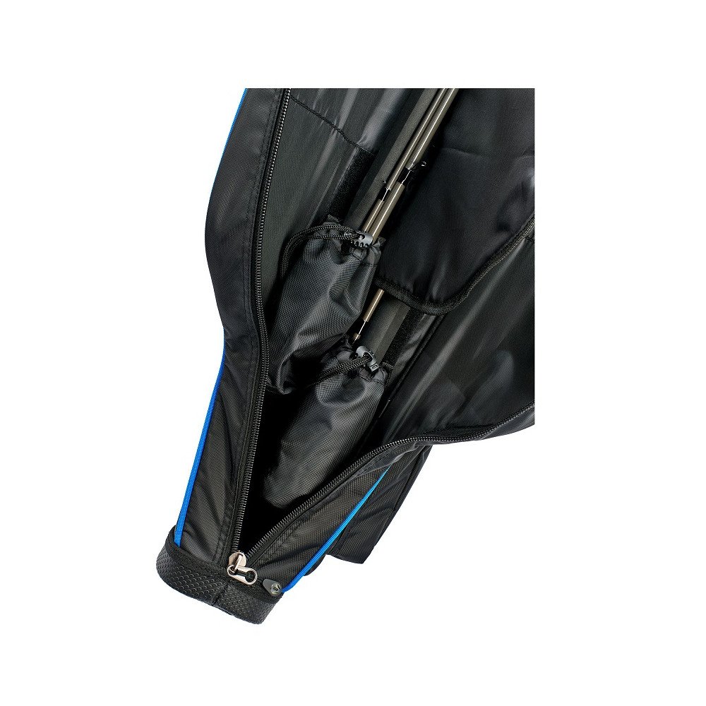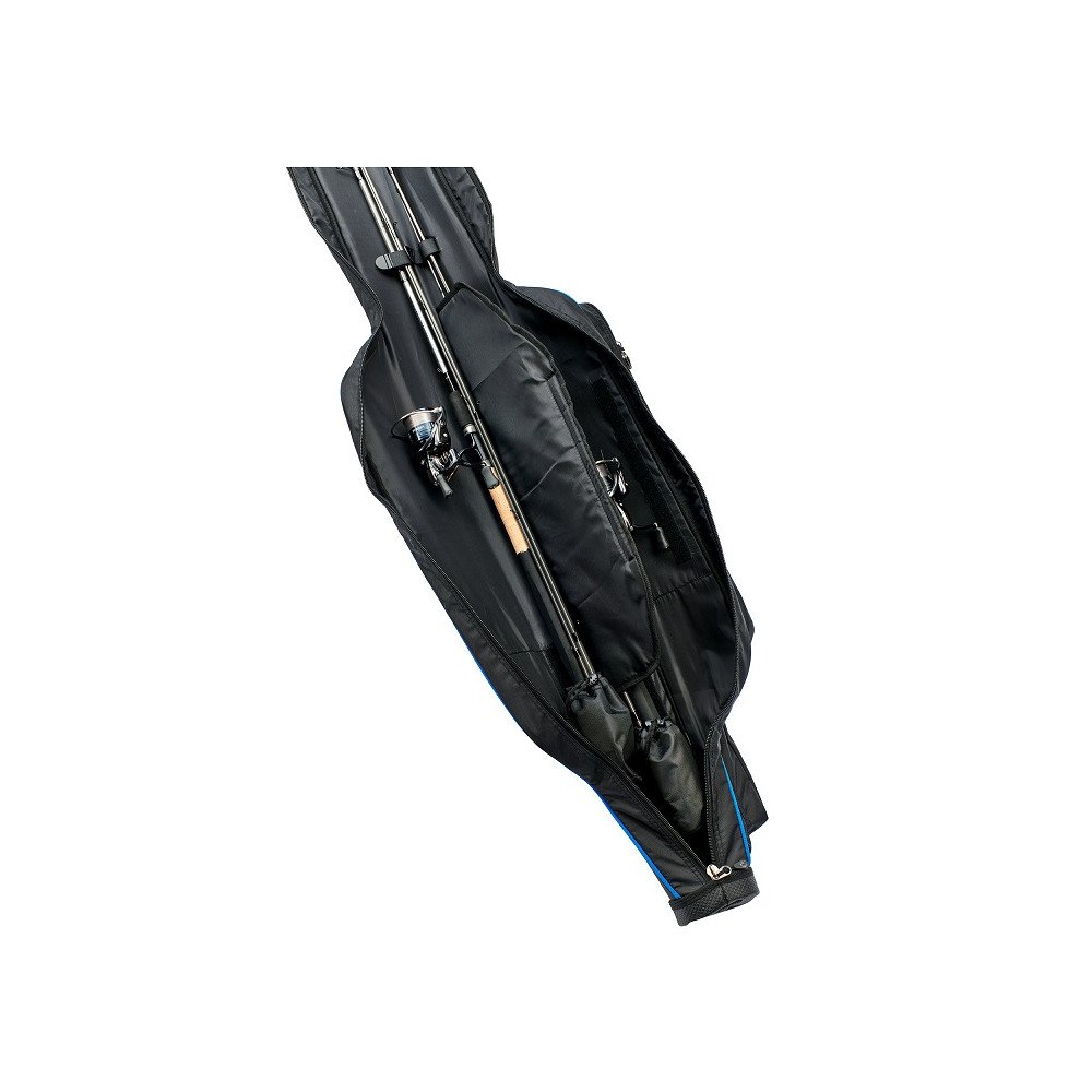 Wzmocniony pokrowiec na wędki z twardym dnem na 2 uzbrojone wędki z kołowrotkami. Wędki mogą być wewnątrz tak ułożone, aby kołowrotki nie dotykały się i nie uszkadzały nawzajem, dzięki możliwości regulacji zaczepów w których osadzone jest wędzisko. Wewnętrzna przegroda chroni przed porysowaniem się wędki o wędkę. Trzy zewnętrzne kieszenie na parasol, wymienne szczytówki i podpórki.