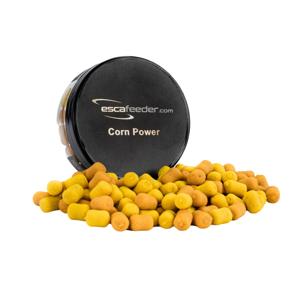 Kukurydziane waftersy opracowane pod kątem łowienia bombką, kiedy główną zanęte stanowi kukurydza wystrzeliwana za pomocą procy. Waftersy swoją zbalansowaną pracą pozwalają wyróżnić przynęte spośród kilkuset ziaren stabilnie spoczywających na dnie. Dzięki temu jest szybciej zauważalna dla żerujących ryb. W pojemniku znajdziemy przynęty o dwóch odcieniach żółci – jaskrawym i stonowanym – to dodatkowy sposób na wyróżnienie naszej przynęty od zanęty. Aromat użyty przy produkcji Corn Power wiernie przypomina konserwową kukurydzę, co dodatkowo potęguje ich skuteczność.