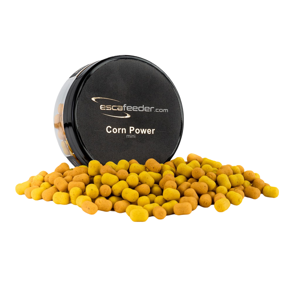Kukurydziane waftersy opracowane pod kątem łowienia bombką, kiedy główną zanęte stanowi kukurydza wystrzeliwana za pomocą procy. Waftersy swoją zbalansowaną pracą pozwalają wyróżnić przynęte spośród kilkuset ziaren stabilnie spoczywających na dnie. Dzięki temu jest szybciej zauważalna dla żerujących ryb. W pojemniku znajdziemy przynęty o dwóch odcieniach żółci – jaskrawym i stonowanym – to dodatkowy sposób na wyróżnienie naszej przynęty od zanęty. Aromat użyty przy produkcji Corn Power wiernie przypomina konserwową kukurydzę, co dodatkowo potęguje ich skuteczność.