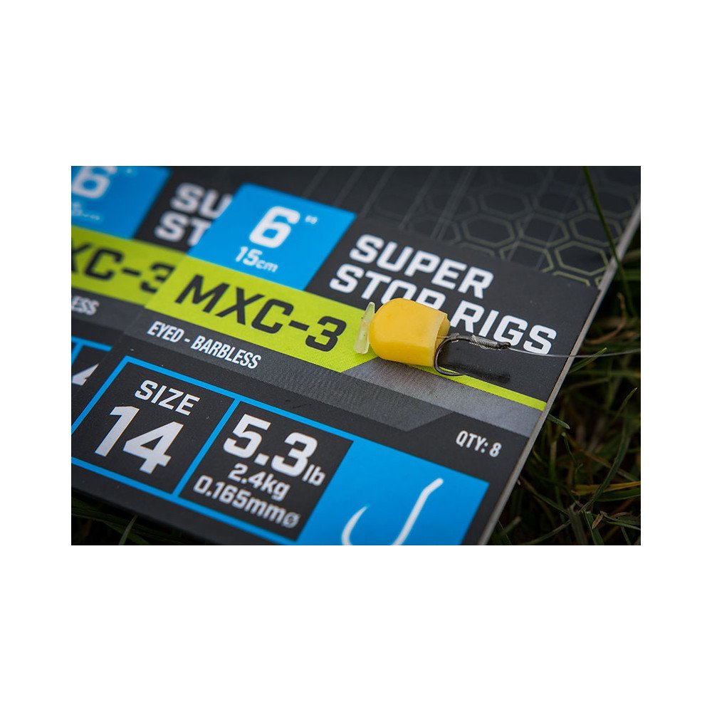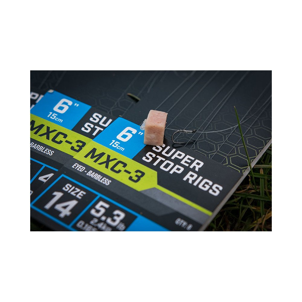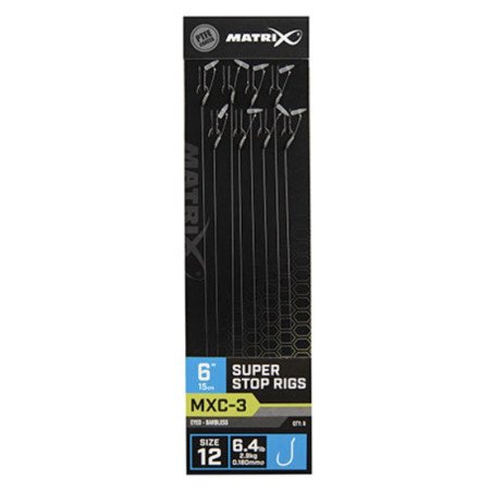 Zaprojektowane jako przypony do tyczki lub feedera, idealne do łowienia na kukurydzę, pelety lub mielonkę. Pokryte teflonem haczyki MXC-3 mają wygięte na zewnątrz oczko, co poprawia prezentację przynęty na włosie. Dokładna długość 6 cali (15 cm) pozwala na bezpieczne przechowywanie w pudełkach na przypony Matrix. Doskonałe stopery Matrix Super Stop do zakładania miękkich przynęt. Wykonane z użyciem żyłki Power Micron.