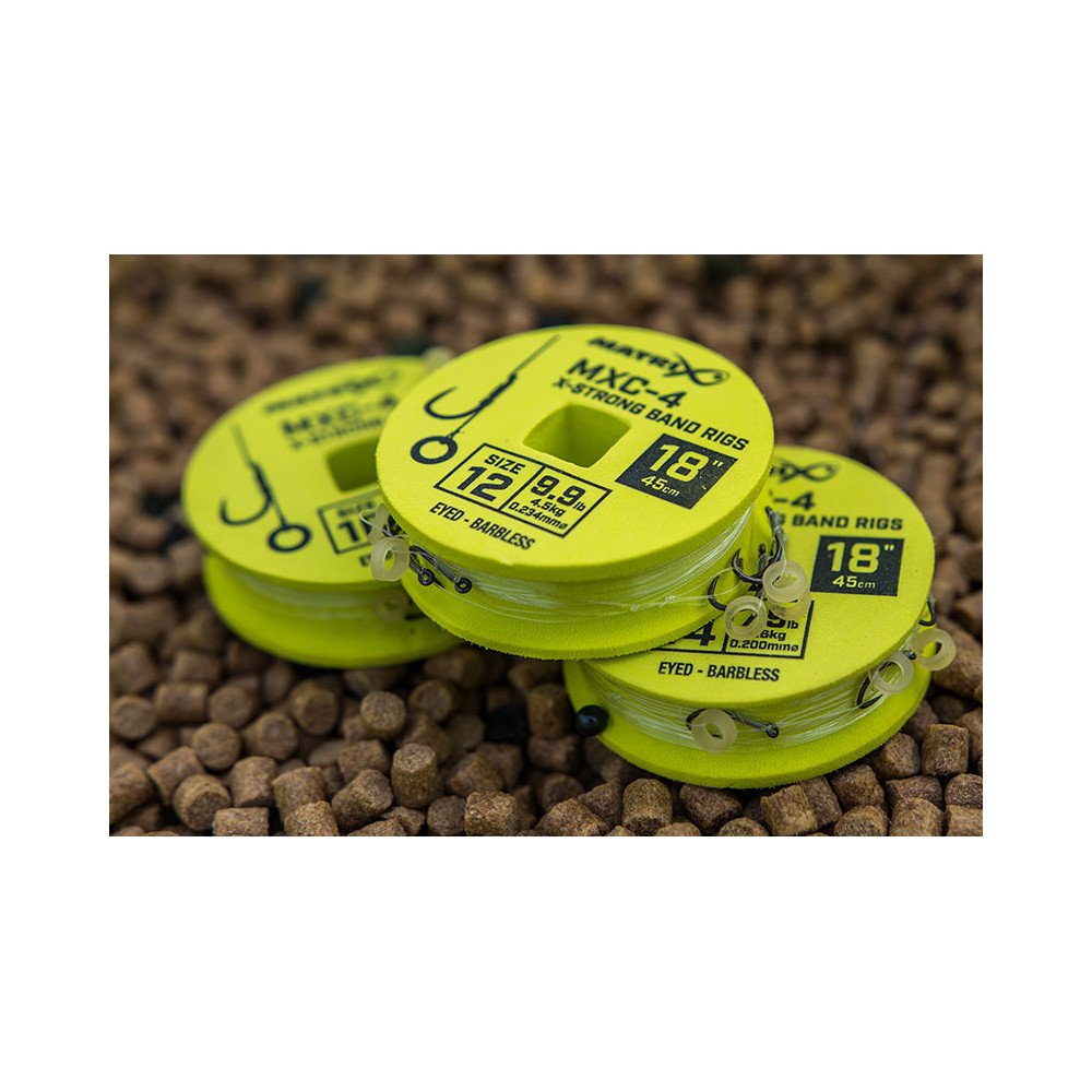 Dłuższe przypony przeznaczone do łowienia z ciężarkiem lub pellet wagglerem, idealne do zakładania peletów lub dumbelsów na gumkę. Bardzo mocne haczyki MXC-4 o szerokim kolanku pokryte teflonem. Opracowane w celu uzyskania maksymalnej wytrzymałości podczas łowienia dużych ryb. Dokładna długość 18 cali (45 cm) pozwala na bezpieczne przechowywanie w pudełkach z dyskami na przypony Matrix. Wytrzymałe gumki Matrix zawiązane metodą Jamiego Hughesa ; metoda gumki w pętli poprawia prezentację i wydłuża żywotność samych gumek. Wykonane z użyciem żyłki Power Micron.
