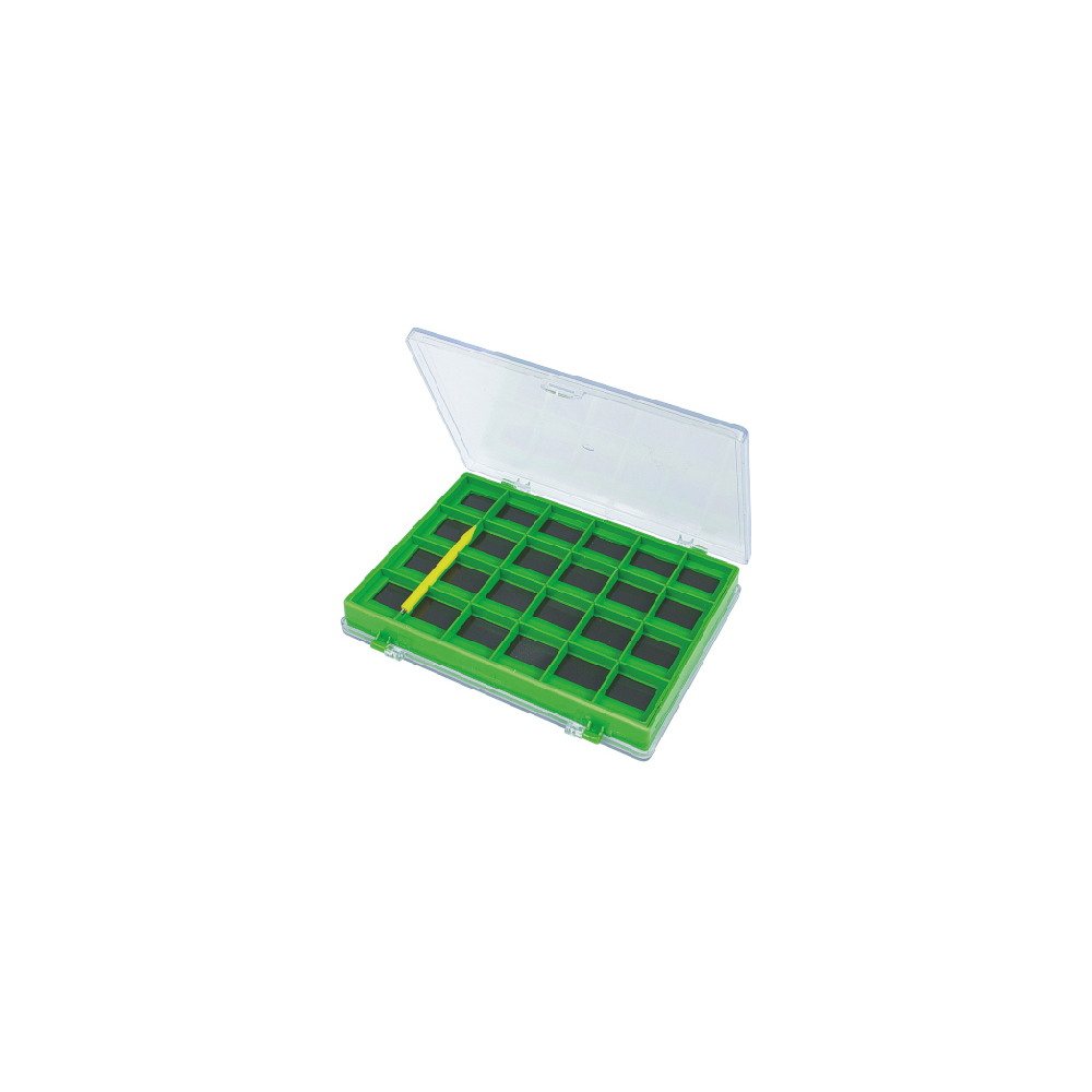 Organizer z wkładek magnetycznym przeznaczony do przetrzymywania haczyków i innych metalowych drobiazgów takich jak krętliki czy agrafki.