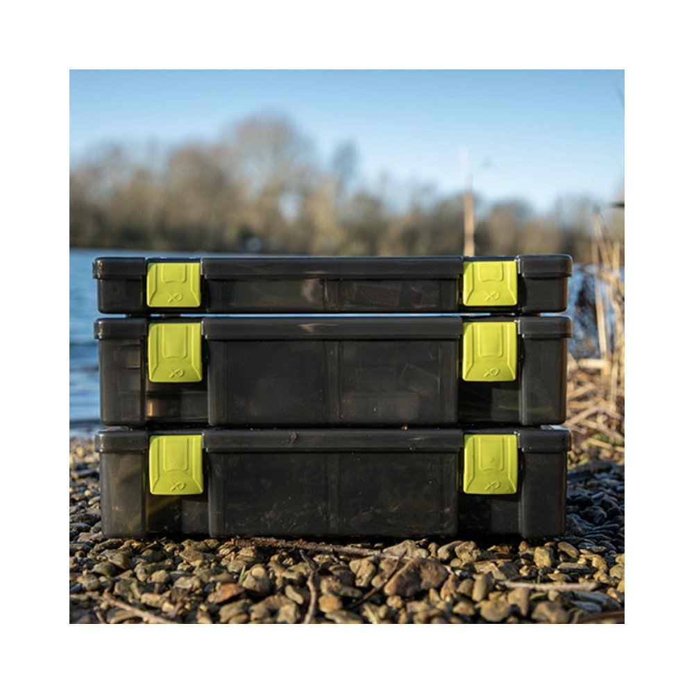 Seria doskonałych pudełek do przechowywania Twojego sprzętu w sposób zorganizowany nad wodą lub w domu. Idealne do przechowywania takich rzeczy, jak koszyczki, spławiki, szpulki z żyłkami lub akcesoriów. Wyjmowane, wewnętrzne separatory pozwalają na organizowanie przegródek. Przezroczyste, ciemnoszare wykończenie pozwala zobaczyć zawartość pudełka, a jednocześnie chroni ją przed promieniami UV.