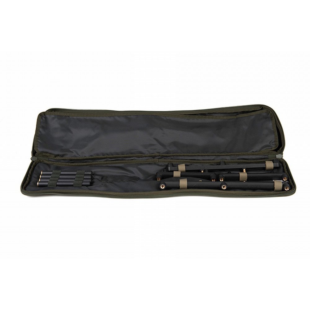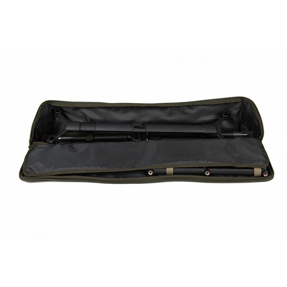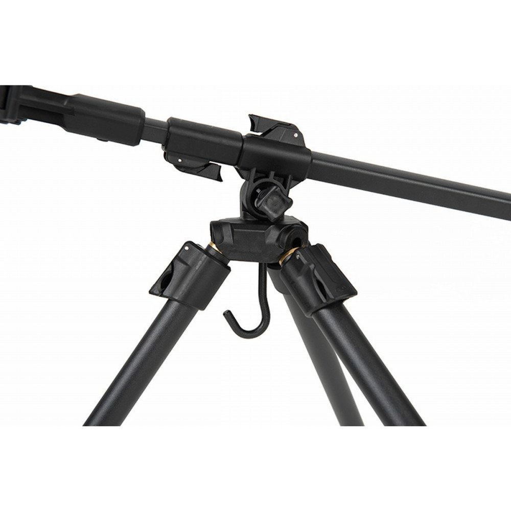 Tripod wyposażono w buzz bary na 3 wędki, możliwość centralnego ustawienia belki oraz hak do dociążenia konstrukcji dla jeszcze większej stabilności. W komplecie znajduje się solidna torba transportowa z mocnym podwójnym zamkiem.