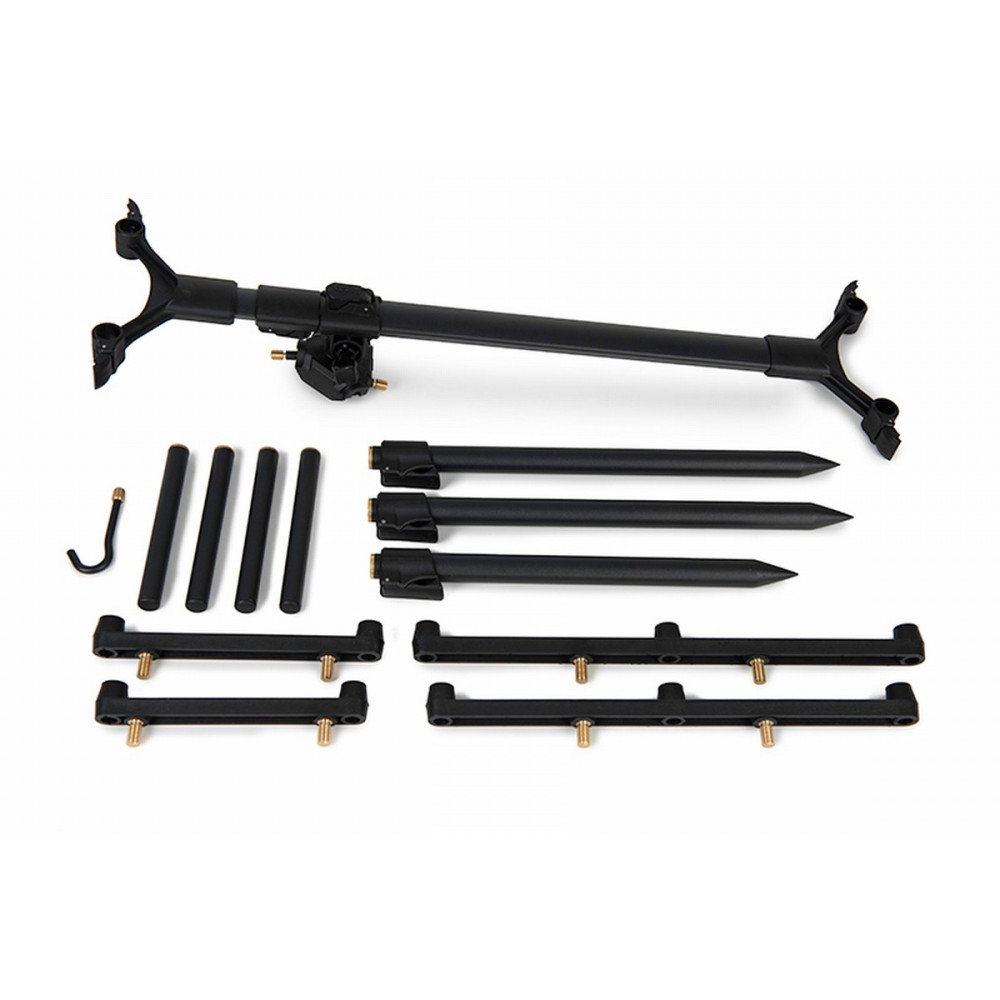 Model oferuje szeroki zakres regulacji – długość głównej belki można ustawić od 61 do 98 cm, a wysokość nóg od 34 do 55 cm. Dzięki regulacji kąta nachylenia w 9 pozycjach wędki można ustawić zarówno szczytówkami wysoko, jak i nisko przy ziemi.