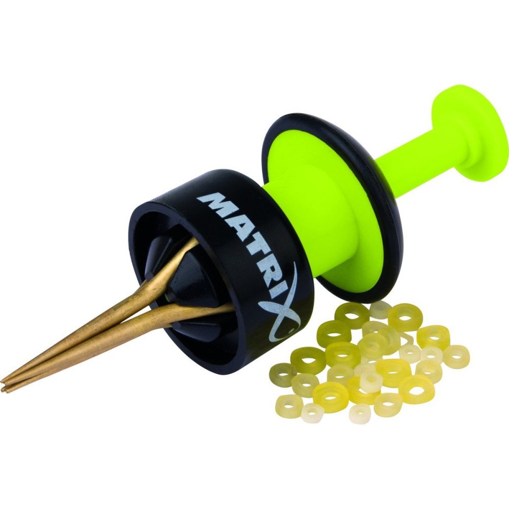 Łatwy w użyciu przyrząd od zakładania peletów i pop-upów w przyponach wykorzystujących gumkę malutką. W zestawie dodatkowe gumki. Działa z gumkami lateksowymi oraz pozycjonerami Bait Align.