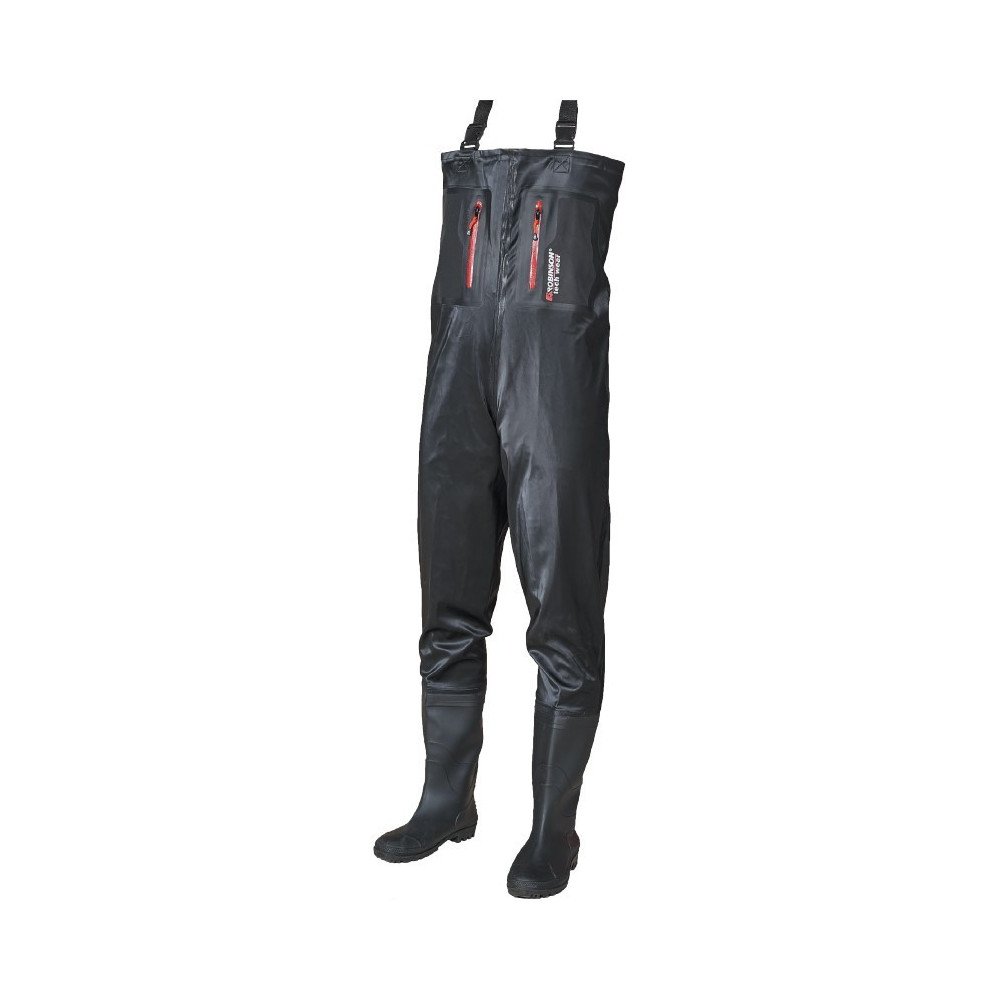 Spodniobuty oddychające Robinson to połączenie innowacyjnych technologii i praktycznych rozwiązań, które tworzą wyjątkowy produkt. Zastosowanie trzywarstwowego materiału PP to gwarancja trwałości i komfortu, nawet przy wielogodzinnym użytkowaniu w trudnych warunkach. Dwie zewnętrzne warstwy z poliuretanu i polichlorku winylu skutecznie zabezpieczają przed wodą, błotem oraz przetarciami, co sprawia, że spodniobuty oddychające Robinson są niezawodnym towarzyszem każdej wyprawy wędkarskiej. Wewnętrzna warstwa z tkaniny dzianej zapewnia z kolei odpowiednią cyrkulację powietrza, eliminując efekt przegrzewania i potliwości – kluczowy aspekt dla utrzymania pełnego komfortu podczas aktywności w terenie. Kolejną zaletą modelu jest gumowy but z grubą podeszwą i agresywnym protektorem, który gwarantuje doskonałą przyczepność na śliskich kamieniach i błotnistych brzegach rzek. Taka konstrukcja chroni stopy przed zimnem i urazami mechanicznymi, jednocześnie zwiększając stabilność. Dzięki laminowanym szwom oraz wodoodpornym zamkom w kieszeniach, spodniobuty oddychające Robinson oferują nie tylko maksymalną szczelność, ale też długowieczność nawet przy intensywnym użytkowaniu. Ich konstrukcja powstała z myślą o połączeniu ochrony przed wodą z maksymalnym komfortem termicznym. Warto zwrócić uwagę także na szerokie, elastyczne szelki – to detal, który znacząco wpływa na komfort noszenia, umożliwiając swobodę ruchów i dopasowanie do sylwetki. Wszystkie te elementy tworzą produkt, który wyróżnia się nie tylko pod względem jakości wykonania, ale też funkcjonalności i ergonomii.