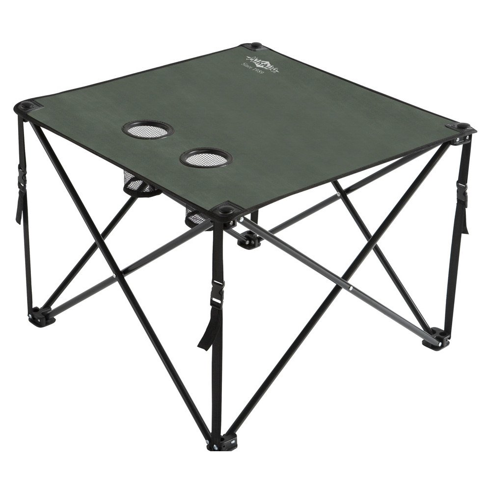 Składany stolik karpiowy z dwoma miejscami na 'ulubiony napój'.