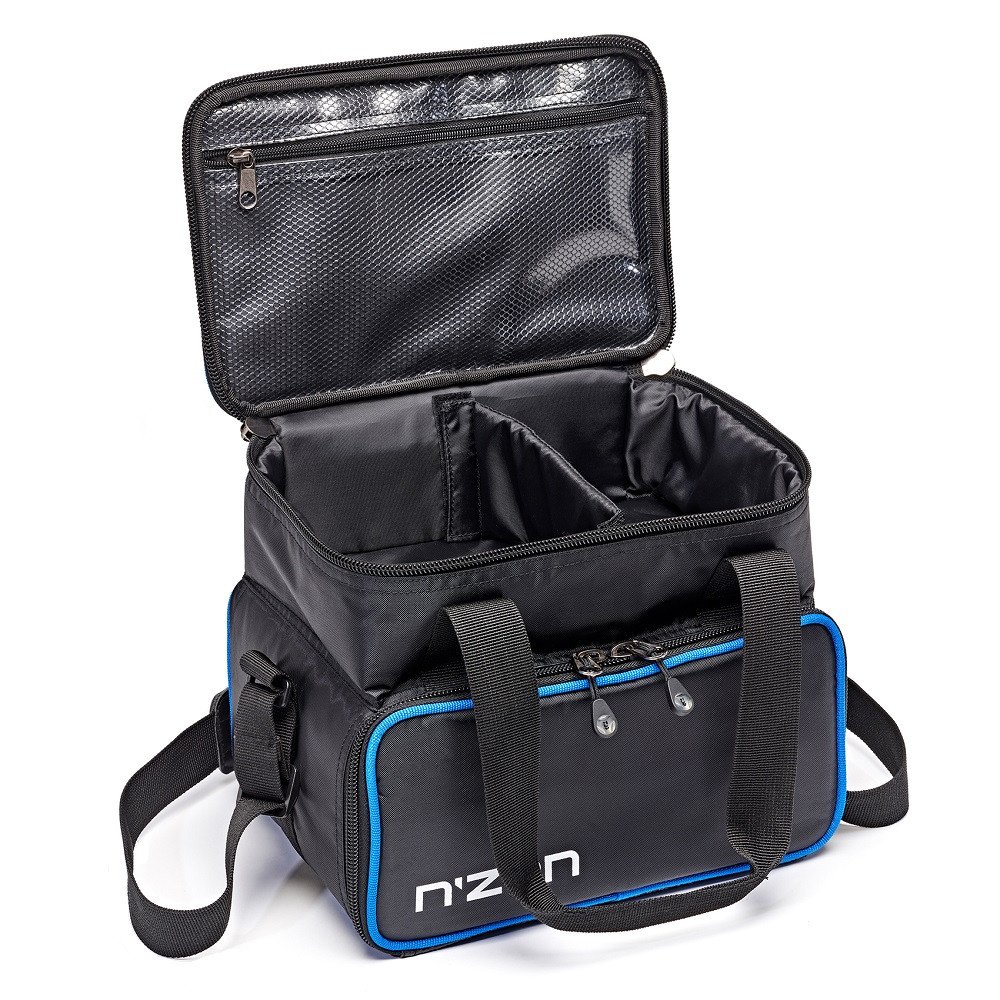 Torba na przynęty z wzmocnionym dnem zapewnia dużą ilość miejsca na wszelkie drobne akcesoria niezbędne podczas wędkarskiej sesji. W dolnej komorze znajdują się 3 pudełka na koszyki zanętowe i inne drobiazgi, po wewnętrznej stronie dekla dodatkowa płytka kieszeń z zamkiem na dokumenty, klucze itp. Górna, obszyta komora wyposażona jest w regulowane rzepami przegrody. W deklu kolejna kieszeń na drobiazgi. Gumowana podłoga chroni przed przedostawaniem się wilgoci od spodu.