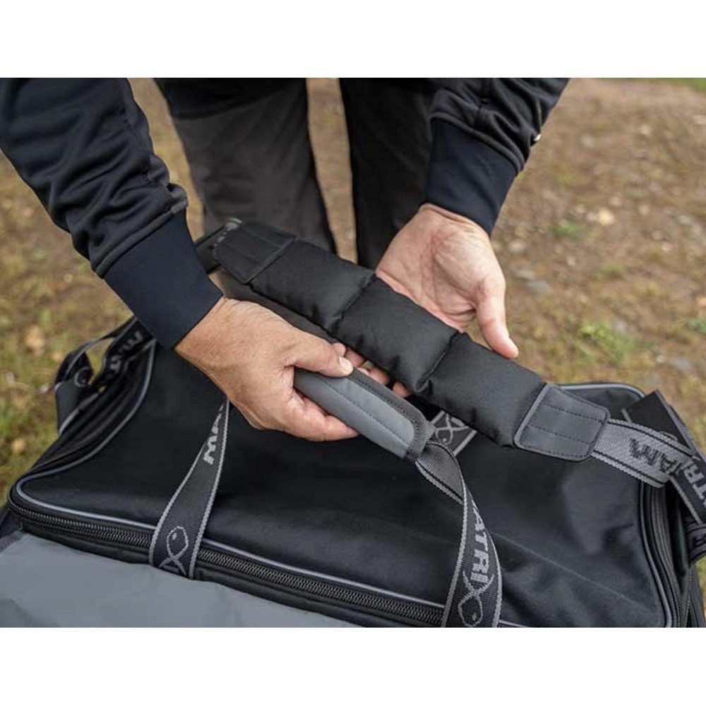 Pojemna torba Matrix Aquos Ultra Carryall z dużą komorą główną, kieszeniami zewnętrznymi i wytrzymałym materiałem 600D.