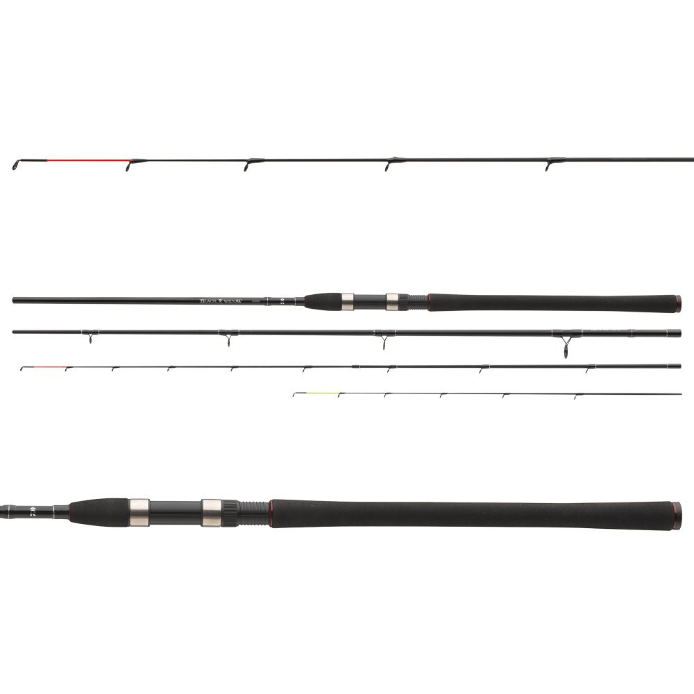 Seria wędek Black Widow Feeder firmy DAIWA oferuje szeroką gamę nowoczesnych wędzisk feederowych w rewelacyjnym stosunku ceny do jakości. Sekcje rękojeści są pokryte wysokiej jakości materiałem niezwykle przyjemne w obsłudze, który można łatwo wyczyścić, gdy zajdzie taka potrzeba. Wyposażone w przelotki z tlenku tytanu. Wędki serii Black Widow Feeder są dostarczane z jedną czerwoną i jedną żółtą szczytówką.