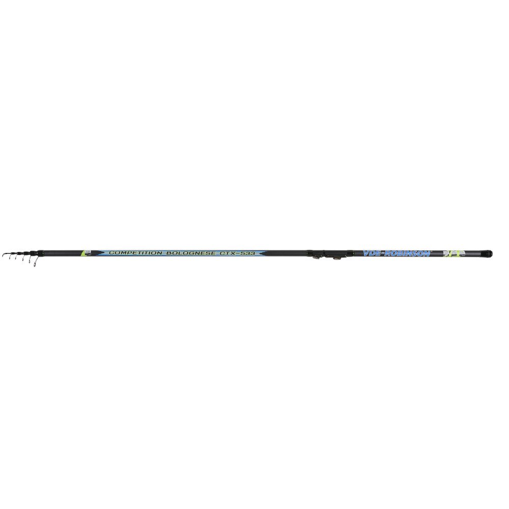 VDE-Robinson Competition Bolognese CTX - Competition Bolognese CTX-…33 to ulepszona wersja bolonek Nano Core Bolognese TX3-..33. Oprócz drobnych, konstrukcyjnych usprawnień wędki dostały nowoczesną szatę graficzną. Competition CTX to seria mocnych, szybkich wędek przeznaczonych do połowu dużych i silnych ryb. Wszystkie sekcje wędki są dodatkowo wzmocnione spiralnym oplotem z taśmy z włókna węglowego. Bolonki wykończone są klasowym uchwytem kołowrotka oraz przelotkami typu SLIM SIC na sprężystych, cienkich i lekkich ramkach.