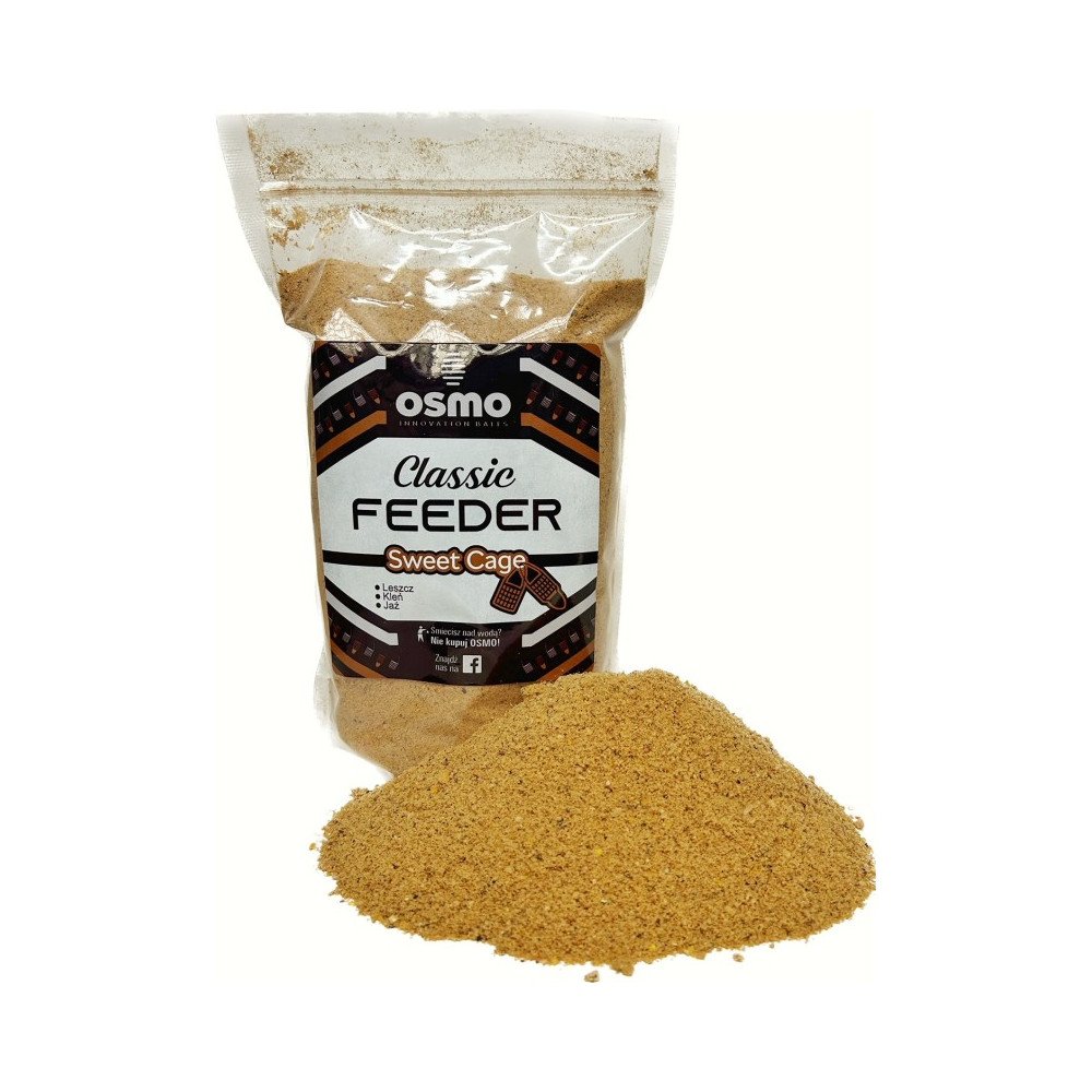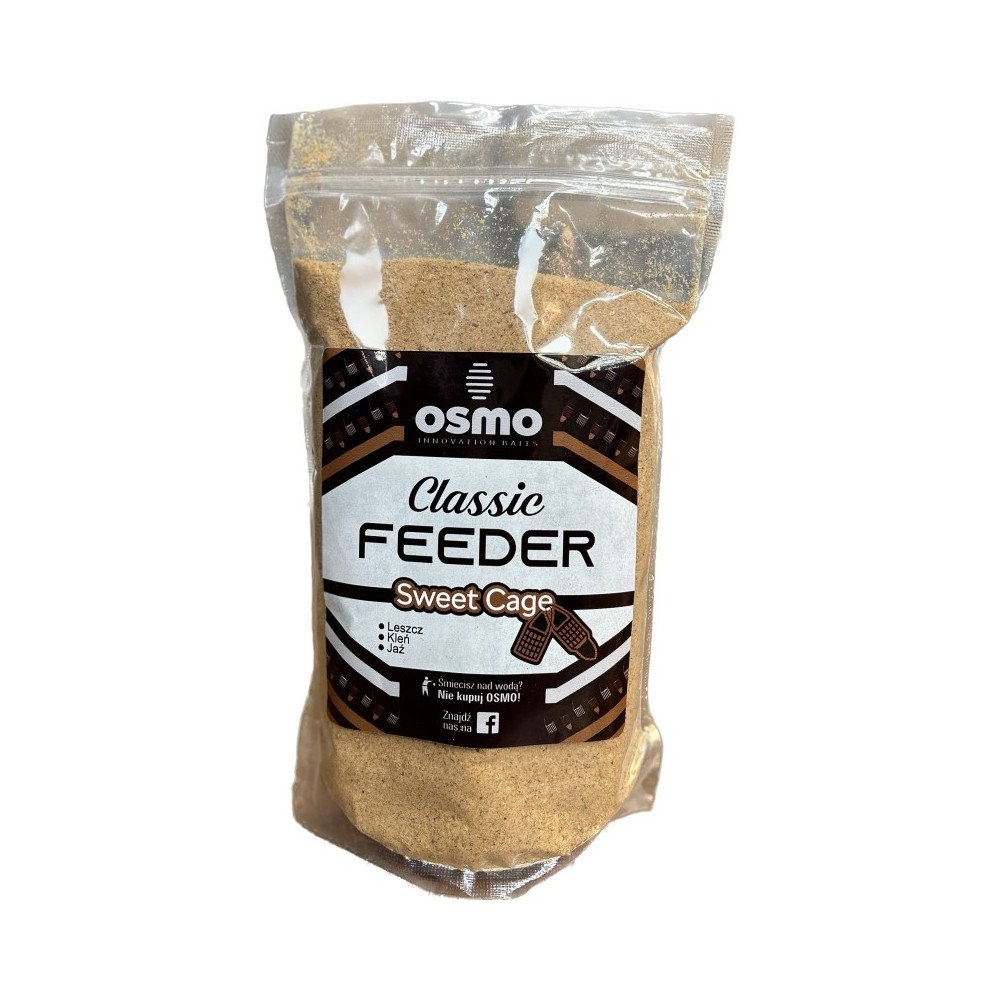 Zanęta OSMO Classic Sweet Cage, jest zanętą o grubszej frakcji z wyczuwalną słodką nutą karmelu. Sprawdzi się przede wszystkim przy połowie leszczy, karpi, jazi, kleni, linów i karasi. Ze względu na sporą zawartość słodkich dodatków jest bardziej klejąca i kaloryczna. Najlepiej sprawdzi się w miesiącach, kiedy ryby szukają bogatszego pokarmu i żerują bardziej intensywnie. Podobnie jak Classic Dark Cage może być wykorzystywana samodzielnie, lub komponowana z innymi dodatkami.