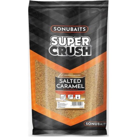 Sonubaits Super Crush Słony Karmel to słodko-słona zanęta feederowa oparta na pelletach, dodatkach biscuit i mączkach rybnych. Stworzona do Method Feeder oraz łowienia karpi i innych ryb spokojnego żeru.